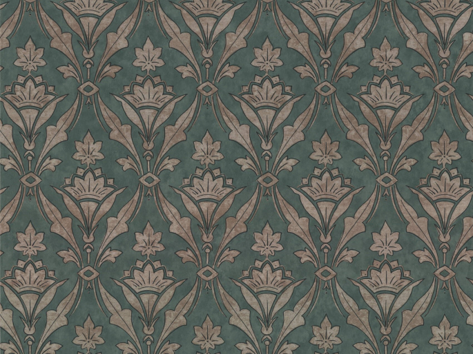Dit ontwerp komt uit een pand dat halverwege de 19e eeuw is gebouwd op de plek van de beruchte Marshalsea gevangenis. Het Gotische rasterpatroon met Moorse invloeden is het oudste behang dat in lagen werd teruggevonden en dateert uit de late jaren 1870.