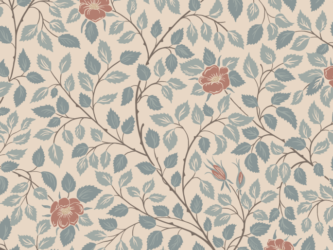 Het Kasteelroos dessin, vernoemd naar de zomerresidentie van de Zweedse koninklijke familie, Solliden op Öland, omhult de kamer in rustgevende patronen. Het kleurenschema Blue, met zachte tinten van beige, blauw en terracotta, maakt dit behang van Sandberg een verfijnde toevoeging aan elke ruimte.