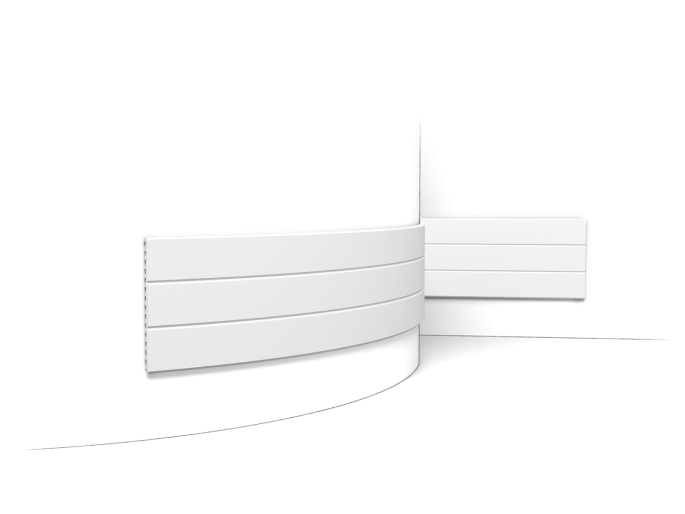 Het flexibele WX205F wandpaneel onderscheidt zich door zijn unieke dubbelzijdige ontwerp met strakke, lineaire lijnen. Zijde A heeft een design van veel smalle latjes naast elkaar en zijde B heeft 3 brede latten naast elkaar. De afmeting van dit paneel is 200 x 25 x 1,3 cm.